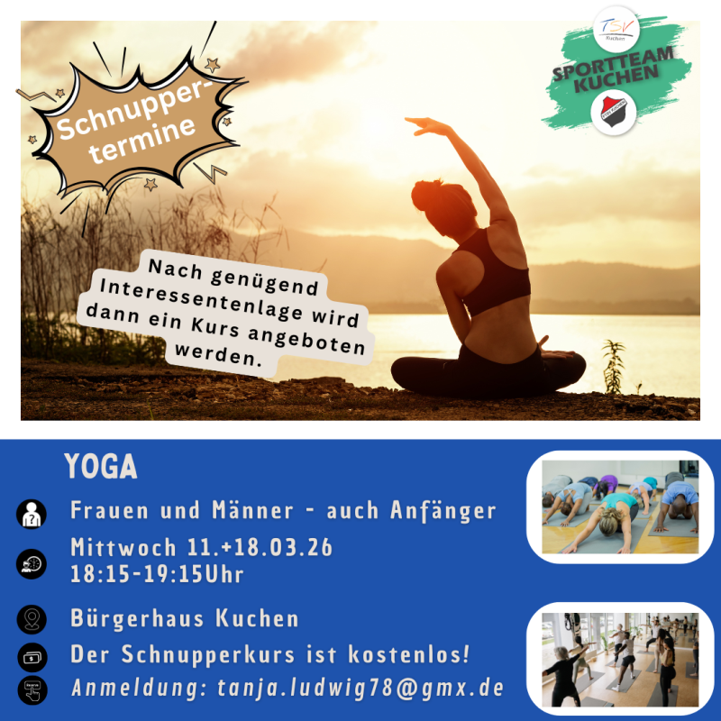 Dieses Angebot gilt für alle Mitglieder des TSV Kuchen ab 16 Jahren.